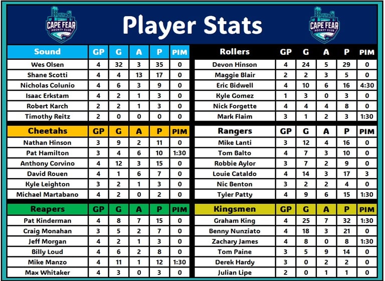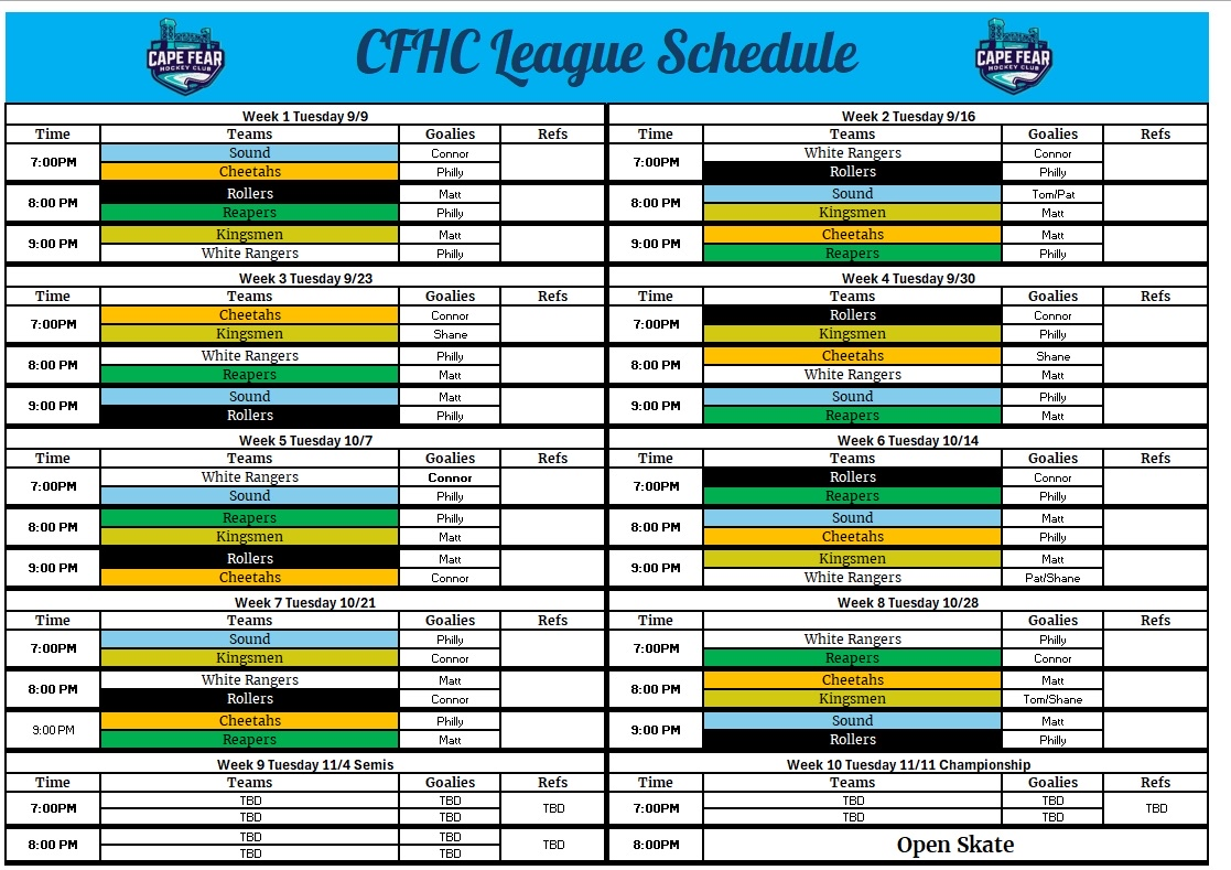 ROLLER HOCKEY FALL LEAGUE 2025 TEAMS