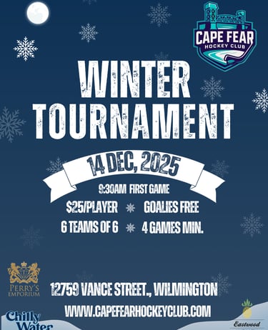 Every registration to this event will bring us closer to achieving our mission. Together, we aim to grow the sport of hockey in our community and ultimately build a rink to host our own games, leagues, and tournaments right here in coastal North Carolina.